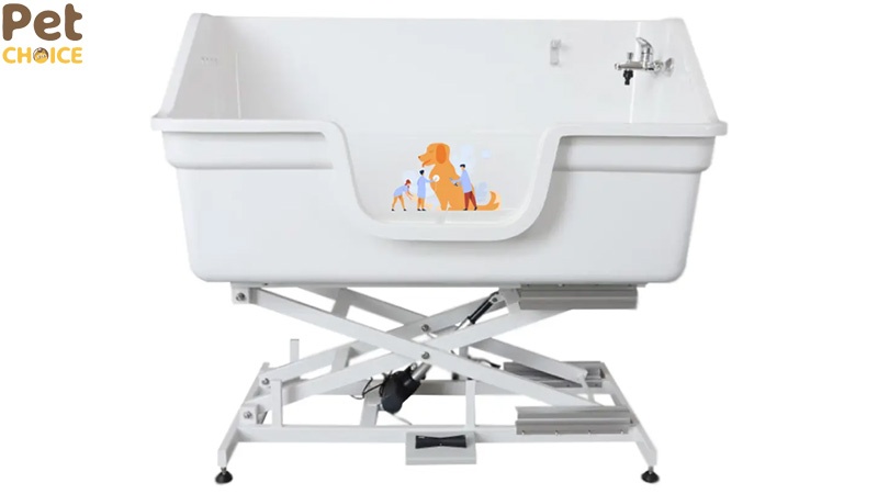 Điểm nổi bật nhất là cơ chế nâng – hạ bằng thủy lực, giúp người dùng điều chỉnh độ cao phù hợp khi tắm cho thú cưng, tránh mỏi lưng và tăng tính tiện nghi.
