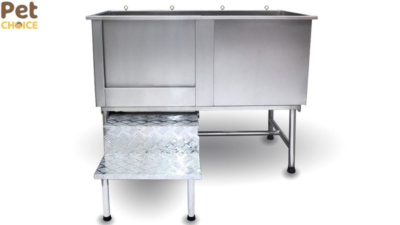 Mẫu bồn tắm inox này được thiết kế đặc biệt với bậc lên xuống tiện lợi, giúp thú cưng dễ dàng di chuyển vào bồn mà không cần bế hoặc đỡ.