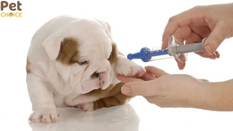 - Nếu chó không tự uống, có thể dùng ống tiêm bỏ mũi tiêm bơm trực tiếp vào miệng, khoảng 1–2 ml/kg cân nặng, lặp lại mỗi giờ một lần.