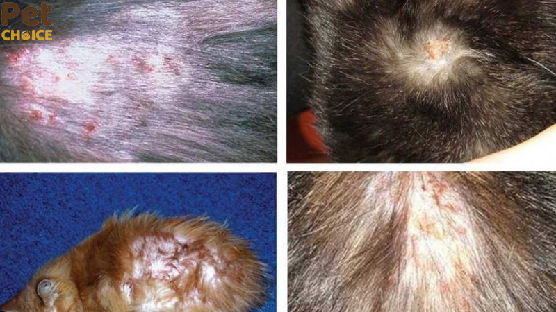 - Mèo thường xuyên gãi, liếm lông hoặc cắn vào các vùng da bị ngứa.