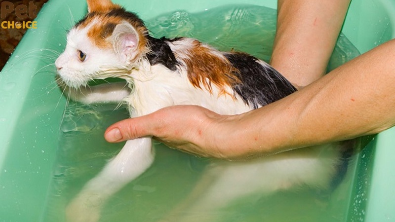 - Dùng sữa tắm chuyên dụng cho mèo, tuyệt đối không dùng dầu gội đầu của người vì có thể gây khô da và kích ứng.