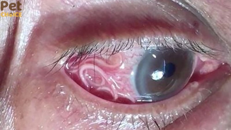 Ấu trùng sán có thể di chuyển đến mắt, gây đau nhức, mờ mắt hoặc giảm thị lực. Đây là dấu hiệu nguy hiểm, cần được khám và điều trị sớm vì có thể dẫn đến tổn thương mắt nghiêm trọng, thậm chí mù lòa nếu để muộn.