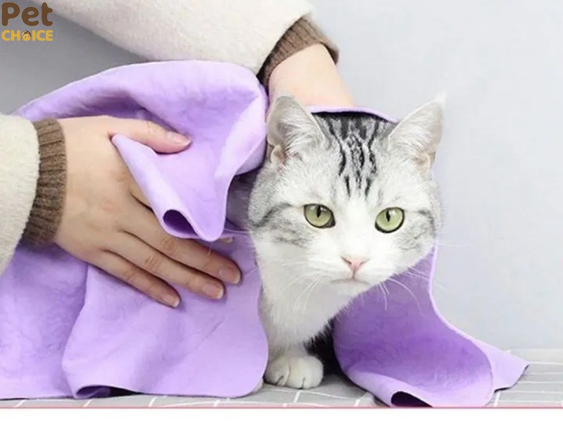 Sau khi tắm, việc lau khô nhanh là cực kỳ quan trọng để tránh mèo bị cảm lạnh. Khăn tắm siêu thấm chính là giải pháp hiệu quả giúp hút nước nhanh gấp nhiều lần so với khăn thường.