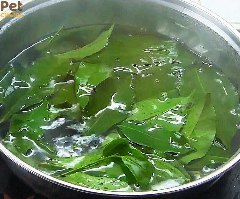 - Đun nước tắm: Cho lá trà đã vò vào nồi cùng 1–1,5 lít nước sạch và một nhúm muối trắng nhỏ, đun sôi khoảng 5–7 phút để các tinh chất tan ra.