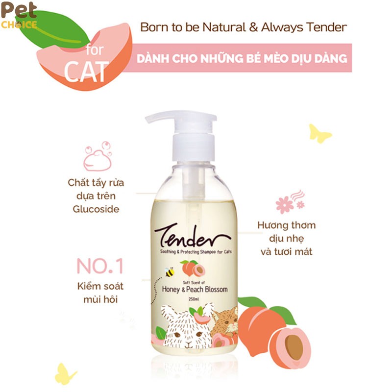 Sữa tắm TENDER cho mèo – Dịu nhẹ, khử mùi và dưỡng ẩm tự nhiên