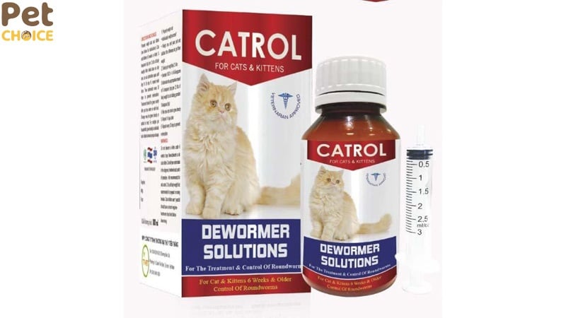 Catrol là thuốc tẩy giun cho mèo dạng siro, được ưa chuộng nhờ mùi dễ uống và cách sử dụng đơn giản, phù hợp cho việc phòng giun định kỳ.