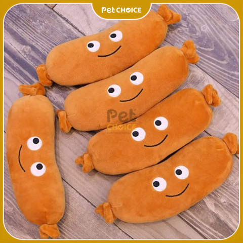 Xúc xích bông được làm từ chất liệu vải mềm mại thân thiện với thú cưng, tạo cảm giác an toàn.